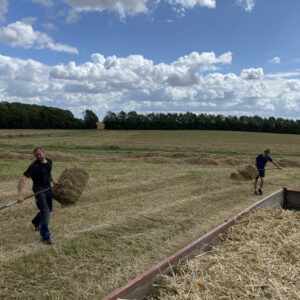 Når kornet er høstet hos den lokale økologiske bondemand, begynder en af årets hyggeligste aktiviteter – at lave halmballer. Vi producerer småballer, Mange kalder dem også Morten Korch halmballer. Vi kan godt lide de småballer, da de passer bedst til vores behov på gården. Og hele familien deltager i arbejdet.
